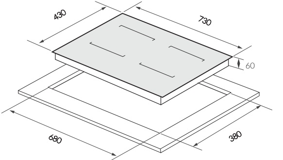 • Kích thước lắp đặt: 680R x 380S mm