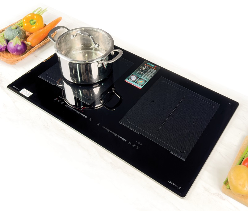 Bếp từ 2 vùng nấu cảm ứng từ, phù hợp với mọi không gian bếp.