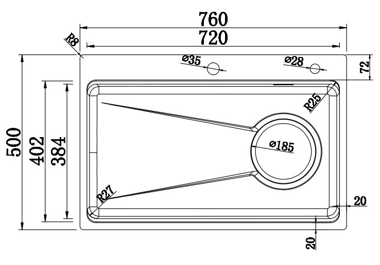 Cắt đá lắp âm (mm) 720*465- Góc R25