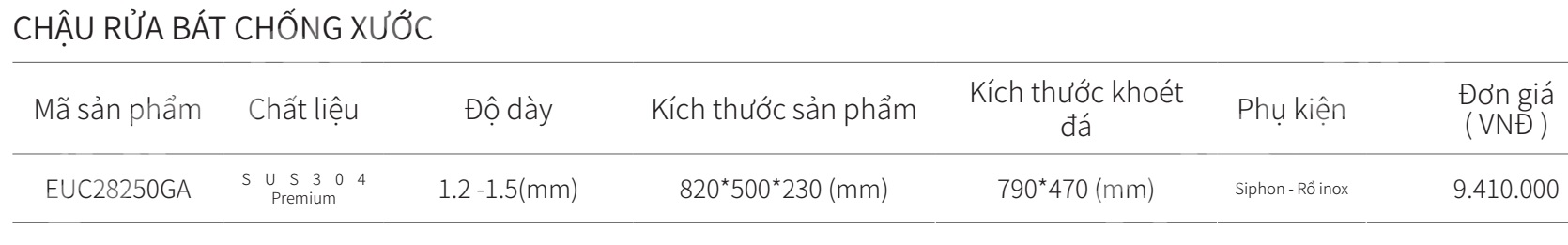 Mô tả chậu rửa bát 2 hộc inox SUS304 EUROGOLD EUC28250GA