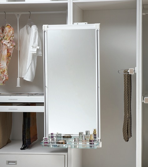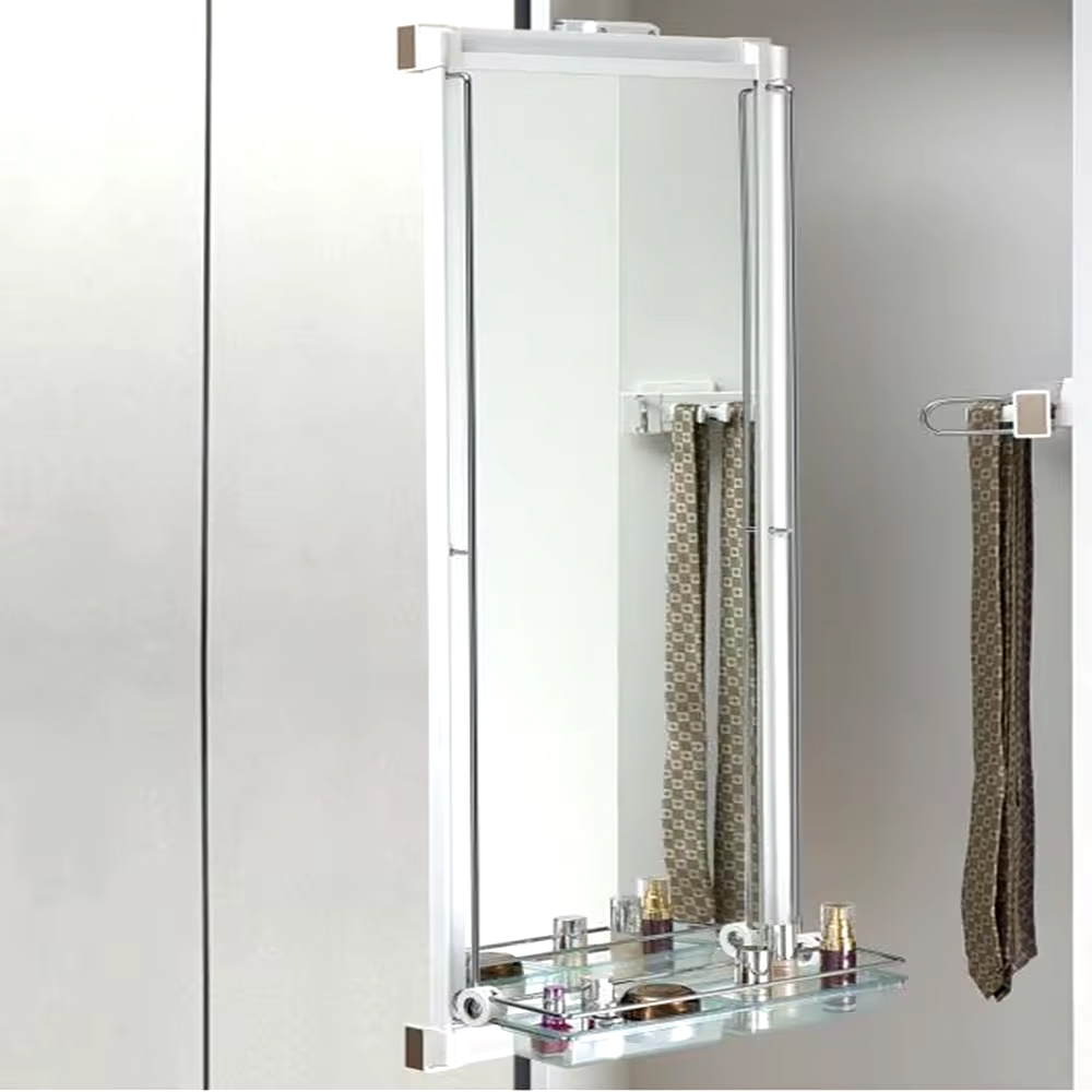 Thiết kế ray trượt thông minh, tiện sử dụng với hệ thống chuyển động gấp khúc, có thể kéo trượt thẳng gương ra ngoài cửa tủ và bẻ ngang khi cần dùng, rất thuận tiện cho việc soi và ngắm.