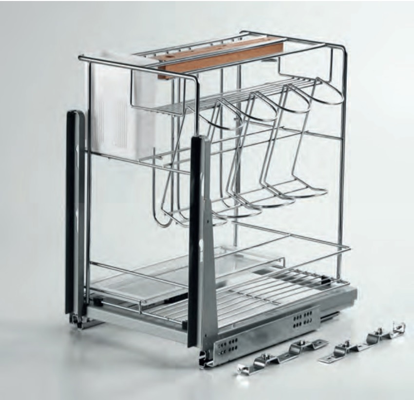 Thiết kế 3 tầng có ống đũa, dắt dao Tích hợp ray âm giảm chấn
