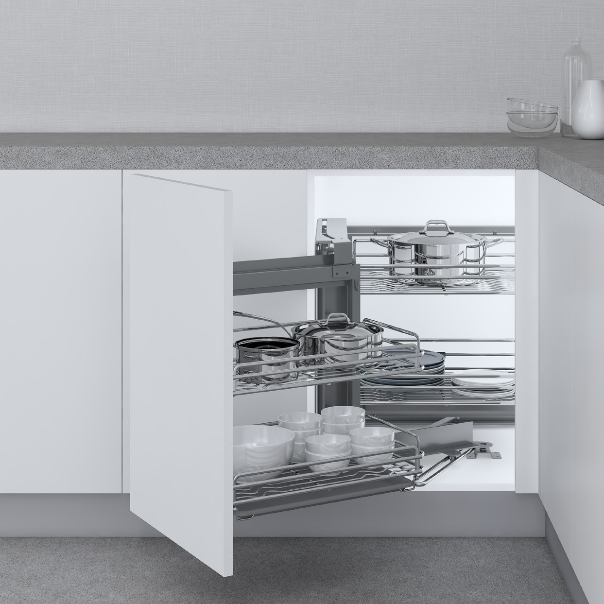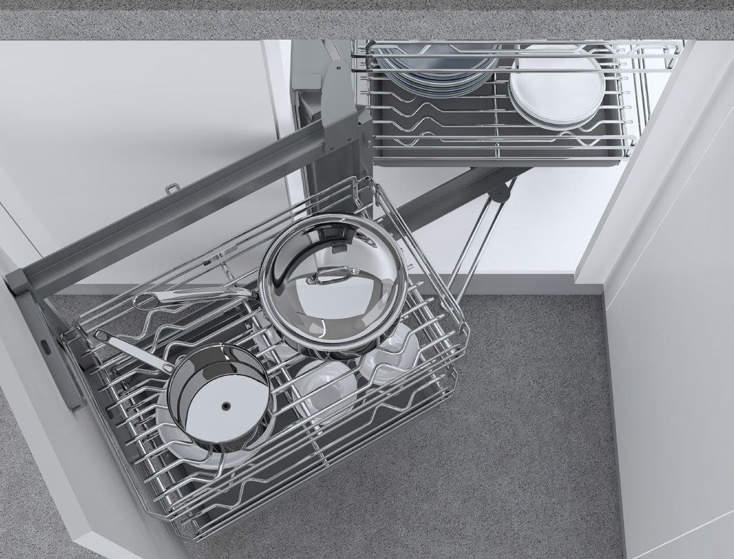 Với những phụ kiện thông minh như giá liên hoàn nan ray giảm chấn Eurogold, mọi góc chết trong tủ bếp đều có cách giải quyết. Góc chết tủ bây giờ không những là nơi bảo quản được hàng loạt các loại đồ đạc vật dụng nhà bếp một cách hữu dụng mà hơn nữa, còn là điểm nhấn giúp căn bếp thêm hiện đại, tiện nghi.
