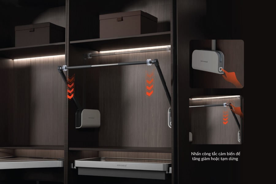 Mô tả sản phẩm kệ treo quần áo nâng hạ điện GRAND X Mimosa Series XM.15E-Luxury