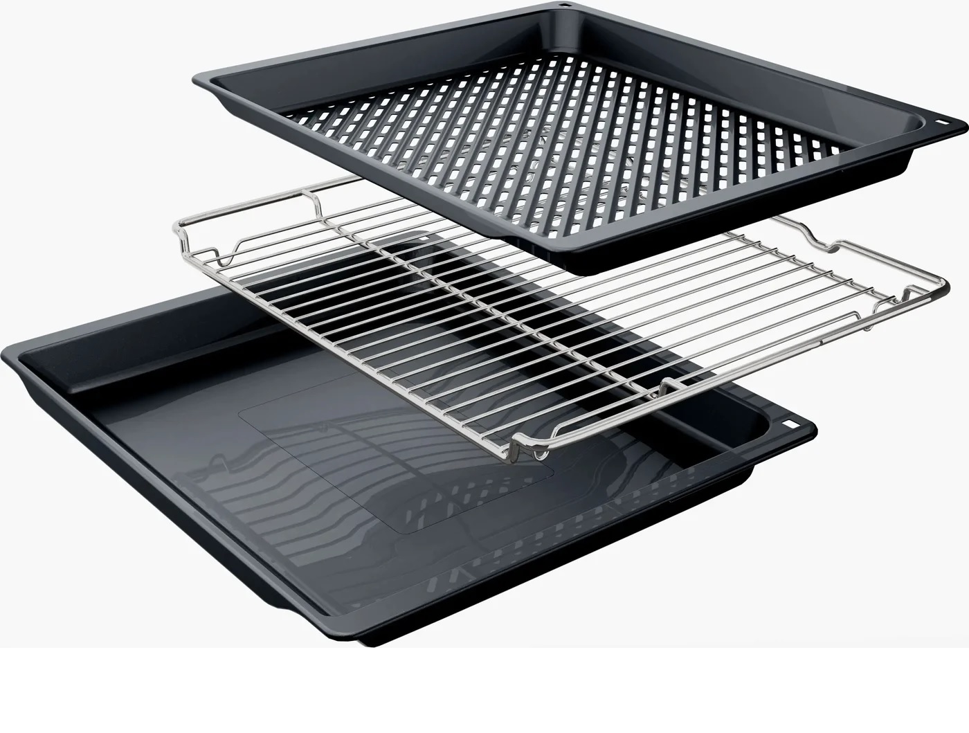 1 x Tấm gia nhiệt Air Fry, 1 x Giá đỡ dây, 1 x Khay hứng dầu tự làm sạch
