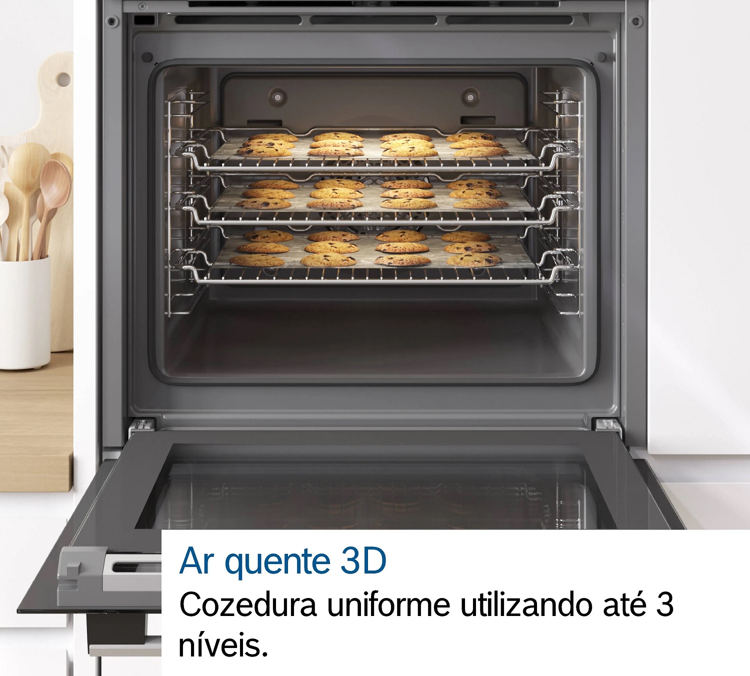 Giờ đây, bạn có thể nướng các món ngon của mình - ví dụ như bánh quy - trên tối đa ba tầng cùng một lúc. Quạt khí nóng 3D phân phối nhiệt nhanh chóng và đều khắp toàn bộ khoang lò. Bạn cũng có thể nướng hai món cùng một lúc trong một lò. Bằng cách này, bạn có thể chuẩn bị lasagna cho bữa tối và bánh muffin cho bữa ăn nhẹ ngày mai, mà không lo mùi và vị bị lẫn vào nhau.
