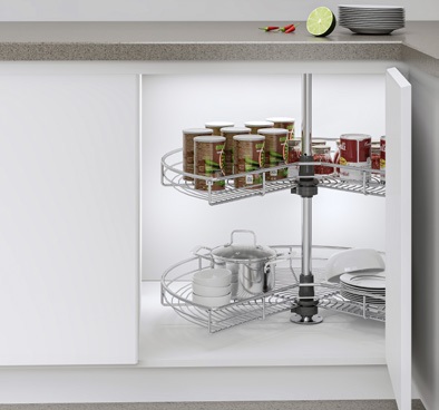 Kiểu dáng đơn giản nhưng có thể tận dụng tối đa mọi góc chết tủ bếp một cách hữu dụng.