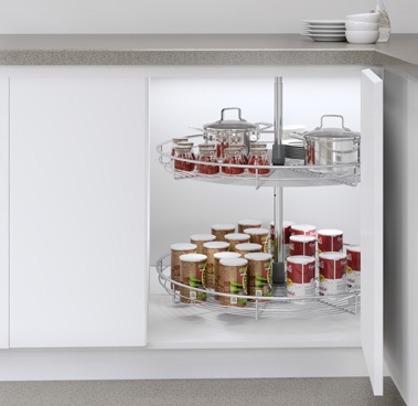 Kiểu dáng đơn giản nhưng có thể tận dụng tối đa mọi góc chết tủ bếp một cách hữu dụng.