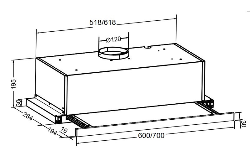 Kiểu dáng: Máy hút âm tủ kéo rút