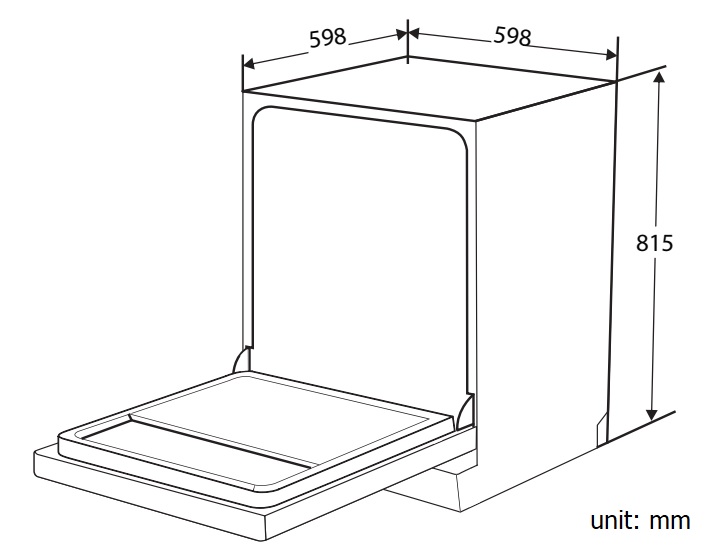 Kích thước sản phẩm: 598R x 598S x 815Cmm