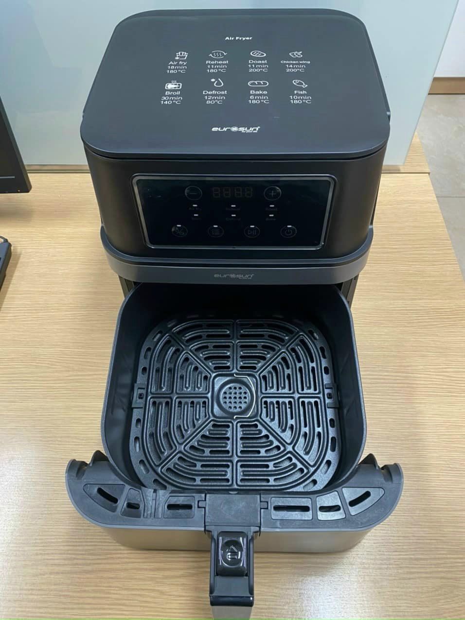 Nồi chiên không dầu Eurosun là sản phẩm công nghệ chiên, nướng kết hợp bằng khí nóng đối lưu không sử dụng dầu mỡ. Nhiệt độ ổn định có thể tùy chỉnh theo ý muốn giảm thiểu 80% lượng dầu mỡ vào cơ thể đảm bảo sức khỏe gia đình.